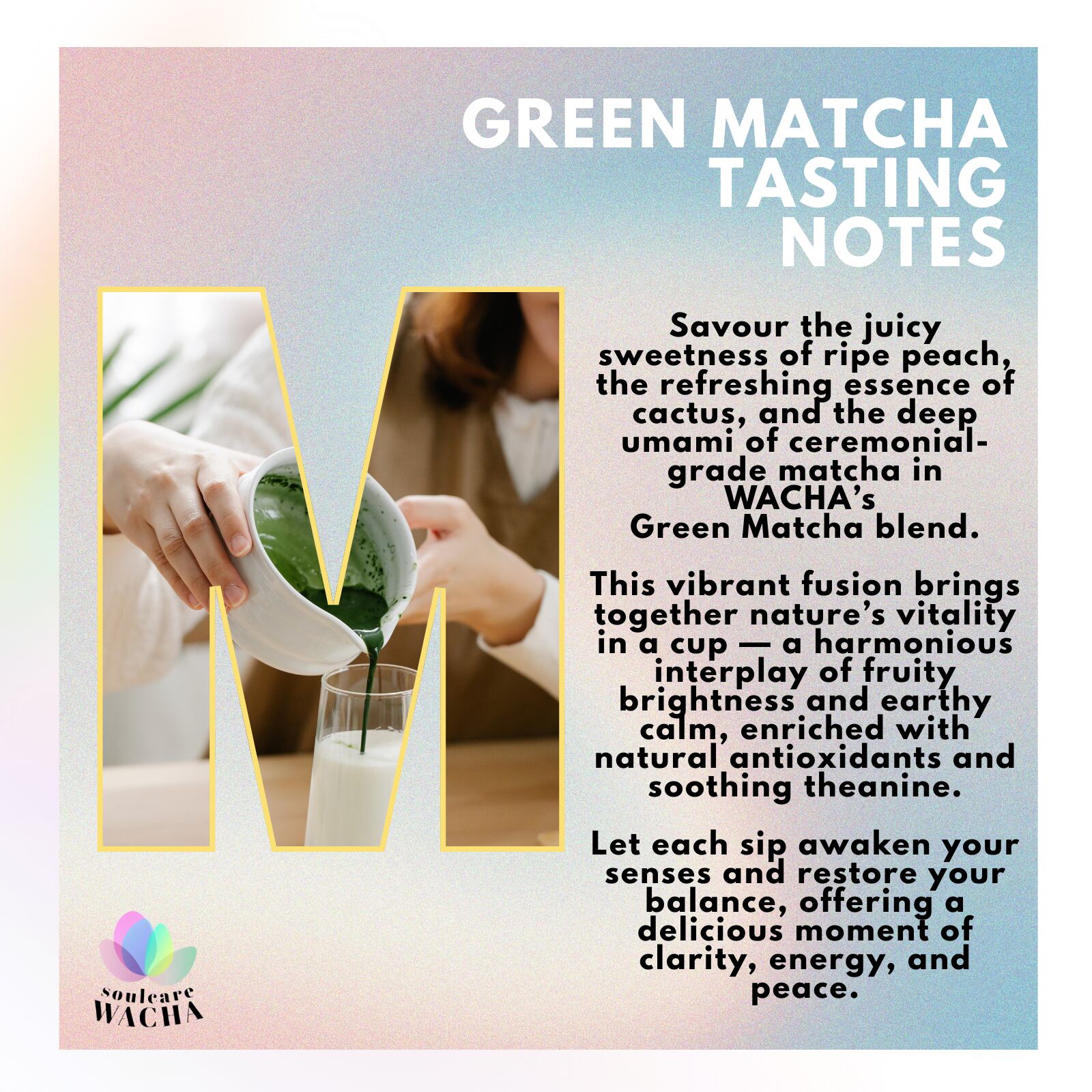 A. 2 g of matcha delivers about 60 mg of caffeine—less than the 80 mg in a cup of drip coffee. The caffeine is released more gently, easing strain on the body, and matcha's high theanine content helps keep jitters in check. Except the WACHA Green series, all WACHA blends are caffeine-free. 2 g の抹茶でカフェイン約 60 mg。ドリップコーヒー 1 杯( 80 mg)より少なく、カフェインの吸収がゆるやかで、身体への負担が少なく、興奮作用を抑制するテアニンも豊富。 WACHAは緑シリーズ以外はノンカフェインです。