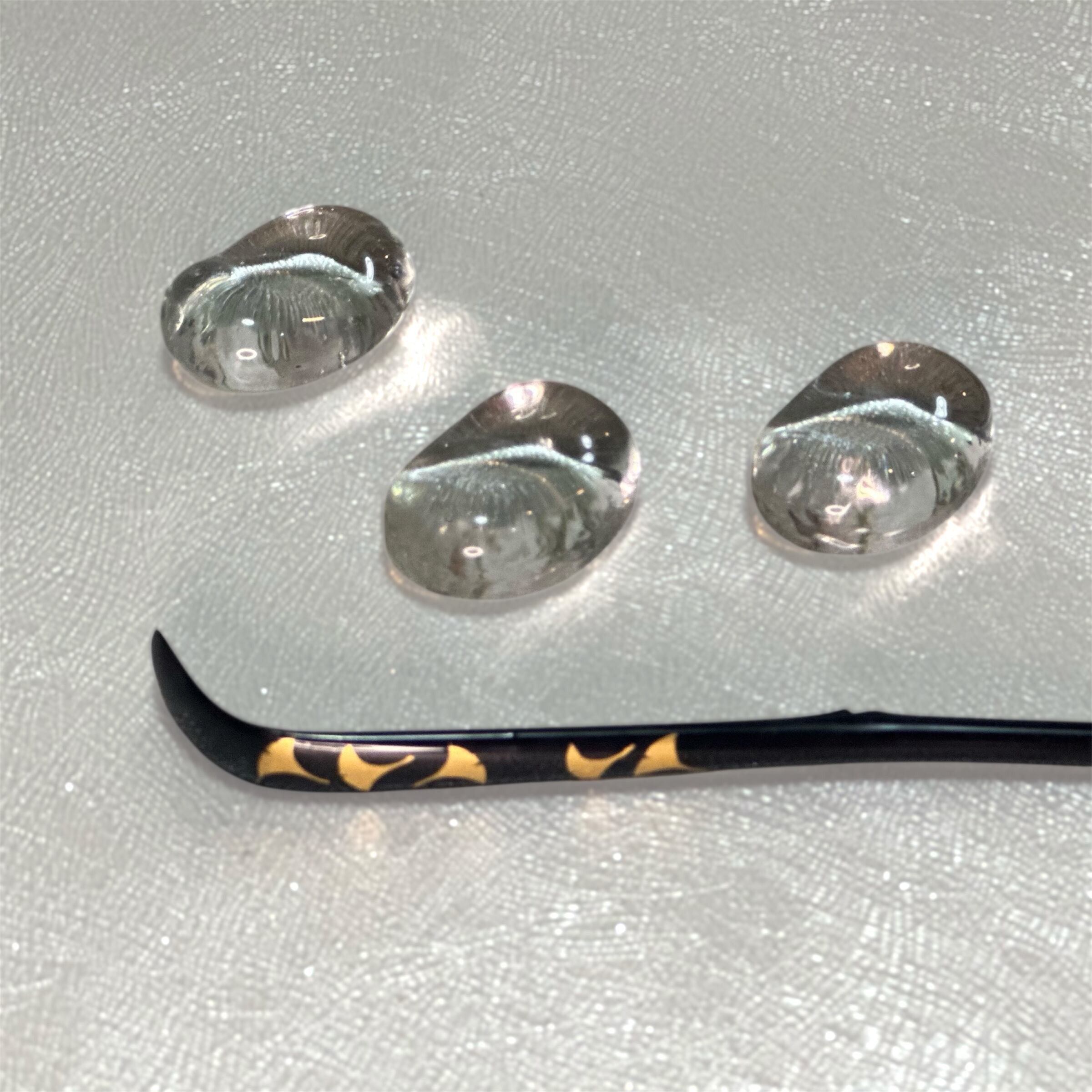 When preparing matcha at home, the bamboo chashaku often becomes stained with matcha powder. Instead of placing it directly on the table or tray, rest it on this glass holder to prevent unwanted stains and preserve the elegance of your tea space.