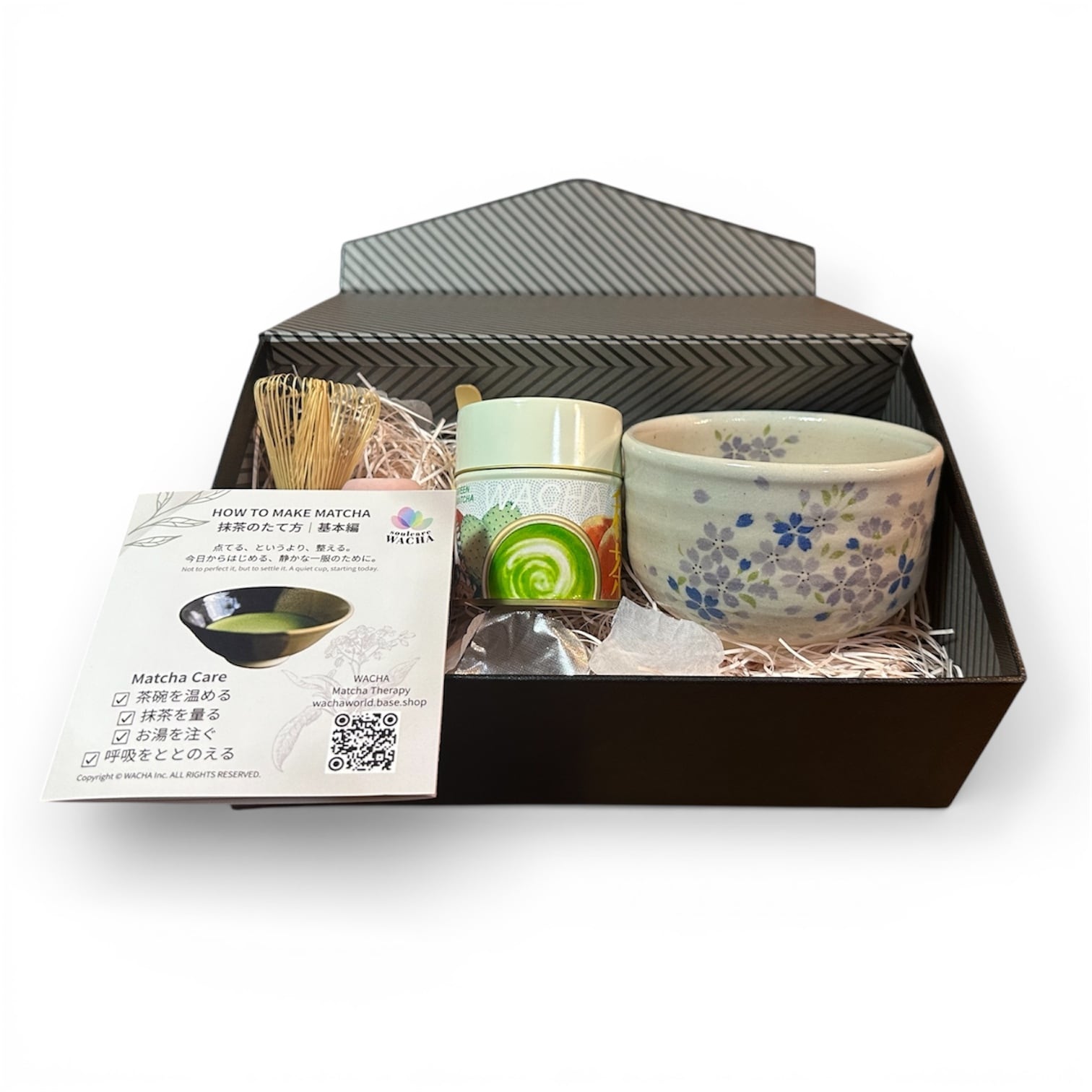 WACHA はじめての野点 抹茶一式|桜紋青 美濃焼(日本製)野点スターターセット