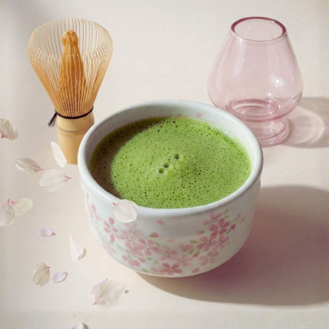 桜の紋様が印象的な抹茶碗で楽しむ、WACHAの桜抹茶スターターセット。