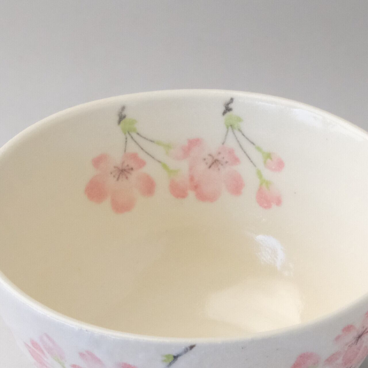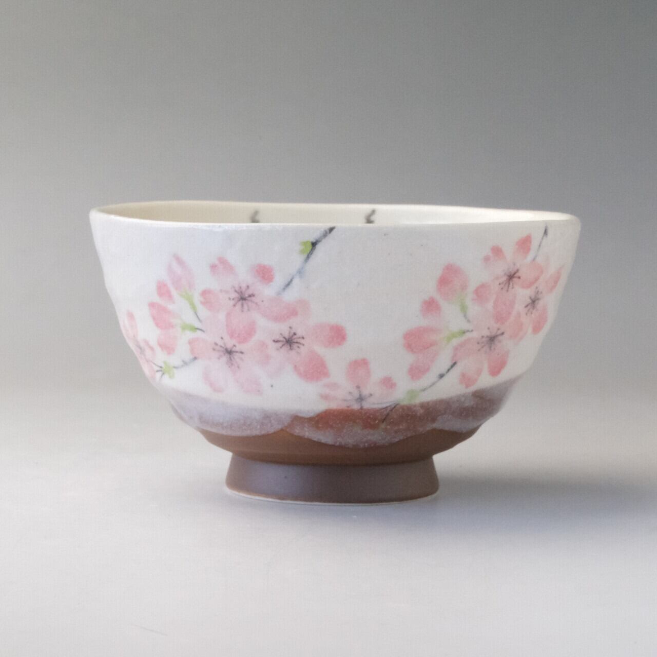 Japanese Mino ware Shiroyama Sakura mini matcha bowl (chawan) set, made in Japan.