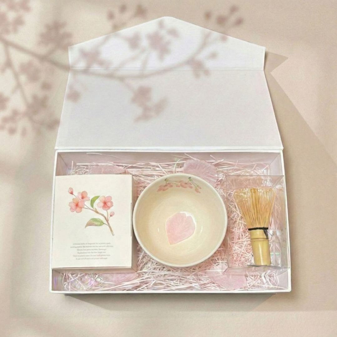 Japanese matcha bowl / Mino ware / Kohiki / sakura matcha set / spring tea gift / matcha starter kit