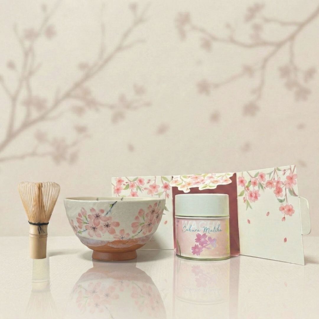 Matcha Starter Set – Shiroyama Sakura Matcha Bowl (Mino Ware Japan) + Mini Whisk & Cherry Blossom Sakura Matcha | Japanese Tea Ceremony Matcha Ritual Gift | WACHA