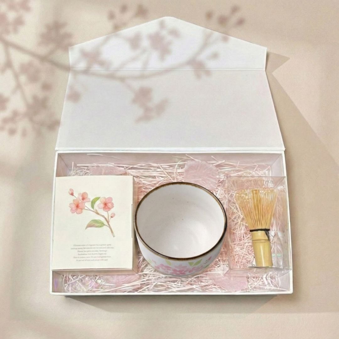 抹茶スターターセット|おぼろ桜 ミニ抹茶碗(美濃焼・日本製)+ミニ茶筅+桜抹茶20g|春限定 抹茶リチュアル 茶道 ギフトセット|WACHA