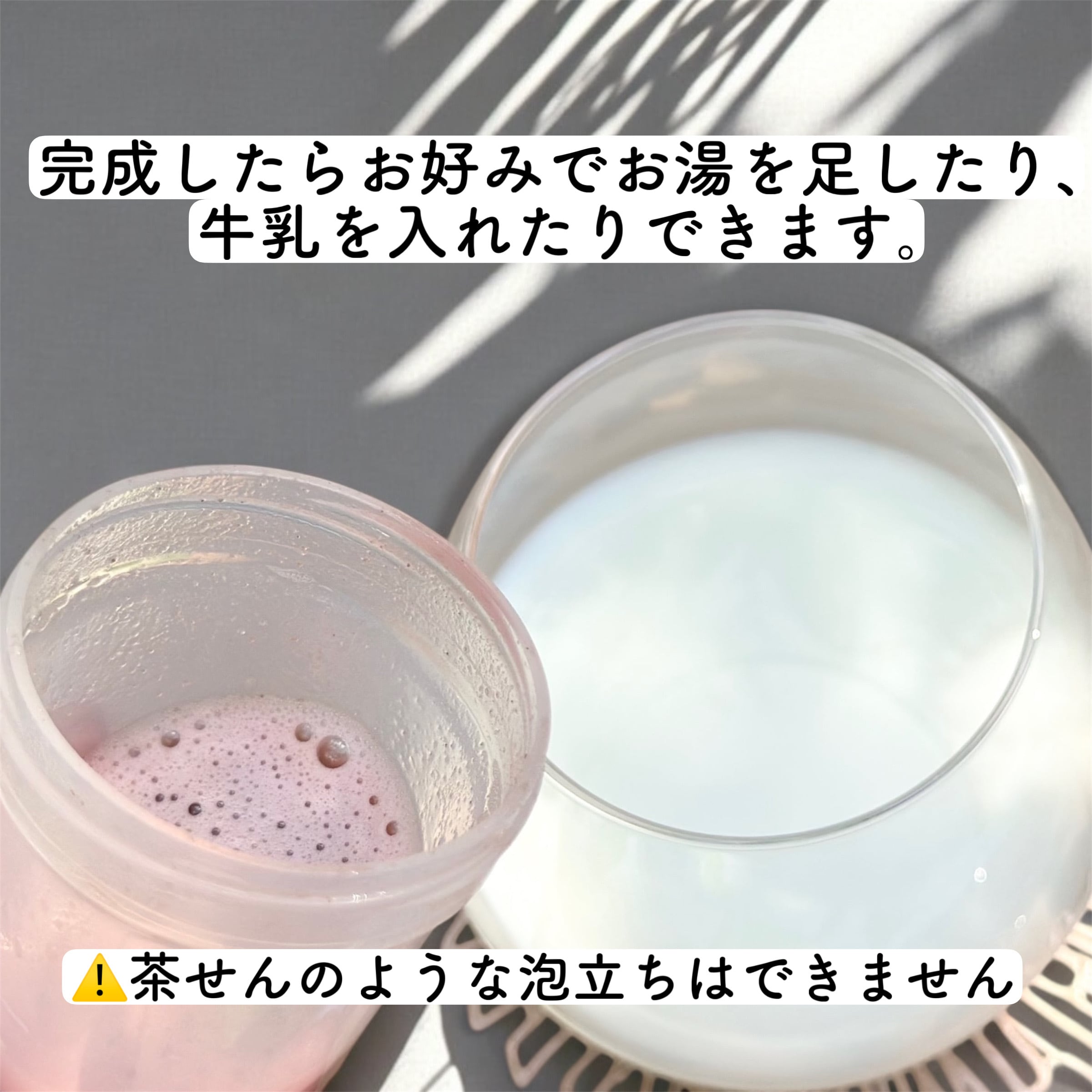 (注意:抹茶のクリーミーな泡は再現できないので、クリーミーさを求める場合には、