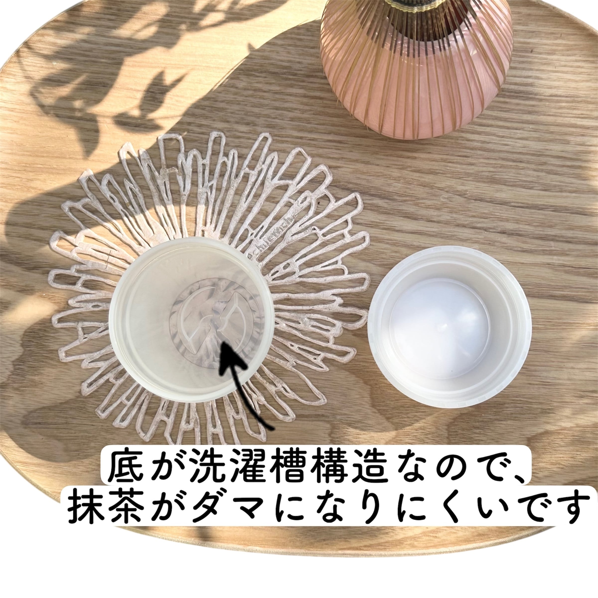 ・底の洗濯機構造で、抹茶がダマになりにくい